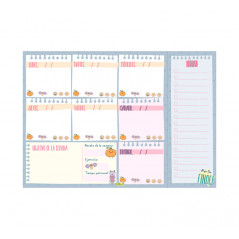 Agenda de espiral doble con la cubierta de cartón forrado peliculado mate. Cierre con goma elástica, cinta punto. Papel de 90gr. FSC® y uñero microperforado.Interior con vista de la semana completa en 2 páginas. Contiene datos personales, calendarios, horarios, fechas importantes, plan anual, planes y escapadas, hojas para checklist, listas de deseos y regalos, etc. Incluye pestañas troqueladas, set de adhesivos temáticos y set de notas engomadas.