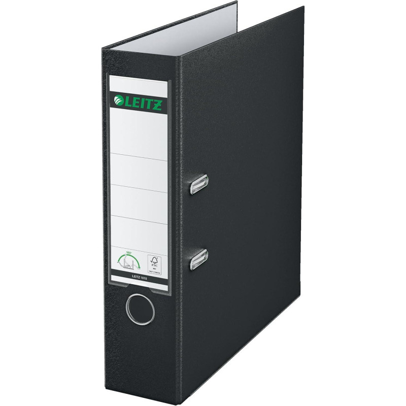 Archivador de palanca fabricado en cartón forrado con PVC en el exterior y papel en el interior, muy resistente. Mecanismo de palanca con ollao y rado. Cantoneras de aluminio inoxidable. Formato Fº y lomo ancho de 80mm con etiqueta adhesiva.