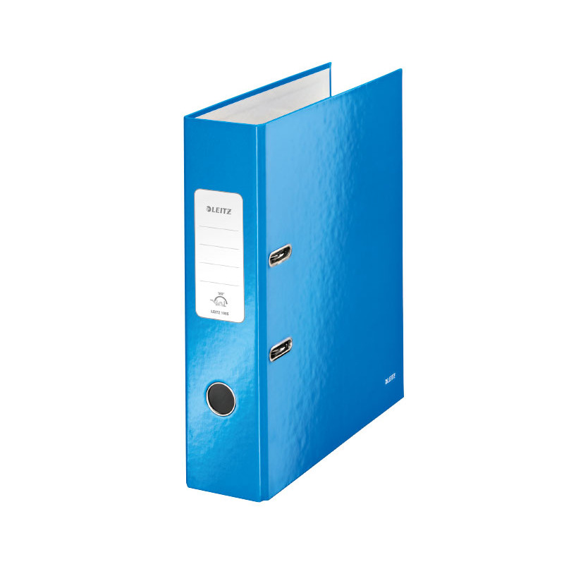 Archivador de palanca fabricado en cartón forrado con PVC en el exterior y papel en el interior, muy resistente. Mecanismo de palanca con ollao y rado. Cantoneras de aluminio inoxidable. Formato Fº y lomo ancho de 80mm con etiqueta adhesiva.