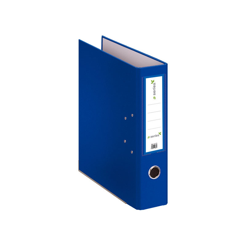 Archivador de palanca fabricado en cartón forrado con PVC en el exterior y papel en el interior, muy resistente. Mecanismo de palanca con ollao y rado. Cantoneras de aluminio inoxidable. Formato Fº y lomo ancho de 80mm con etiqueta adhesiva.