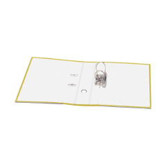 Archivador de palanca fabricado en cartón forrado con PVC en el exterior y papel en el interior, muy resistente. Mecanismo de palanca con ollao y rado. Cantoneras de aluminio inoxidable. Formato Fº y lomo ancho de 80mm con etiqueta adhesiva.