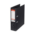 Archivador forrado exterior e interiormente con PVC. Cantoneras metálicas. Tarjetero en el lomo y etiqueta intercambiable. Lomo de 7,5 cm. Doble mecanismo de palanca para archivar formato A5.