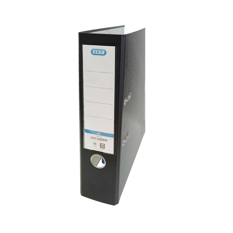 Archivador de palanca fabricado en cartón forrado con PVC en el exterior y papel en el interior, muy resistente. Mecanismo de palanca con ollao y rado. Cantoneras de aluminio inoxidable. Formato Fº y lomo ancho de 80mm con etiqueta adhesiva.