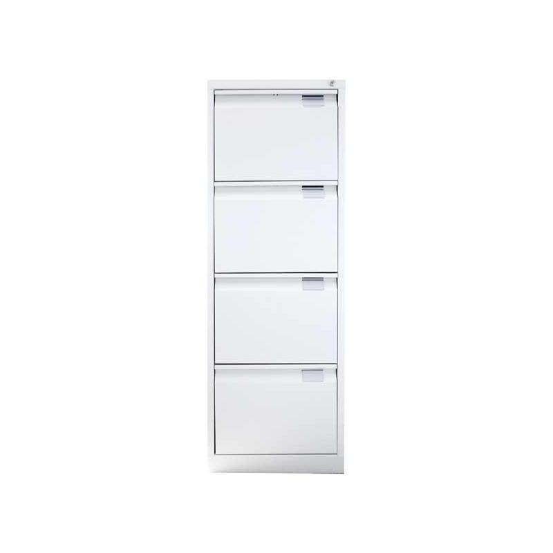 Archivador metálico de 4 cajones, con estructura monoblock fabricada en chapa de acero laminada (acero EN-10130). Cajones 100% extraíbles con guías metálicas deslizantes con rodamientos. Medida útil del cajón: 53,1x38,3x27,4cm. Incluye adaptador para colgar carpetas A4, folio y folio prolongado. Con sistema de apertura selectiva de cajones para evitar que se puedan abrir todos al mismo tiempo, y por lo tanto también el riesgo de vuelco. Cada cajón lleva un porta etiquetas de PVC. Cerradura intercambiable con cilindro de 22 mm y llaves articuladas a 90º (antishock). Disponible llave maestra. Tirador integrado en la parte superior del cajón. Medidas: 132,1X47,2X62,2cm.