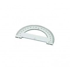 Semicírculo escolar, fabricado en poliestireno. Graduado, biselado y reborde para tinta. 100% Reciclable. Certificadas según norma EN 71