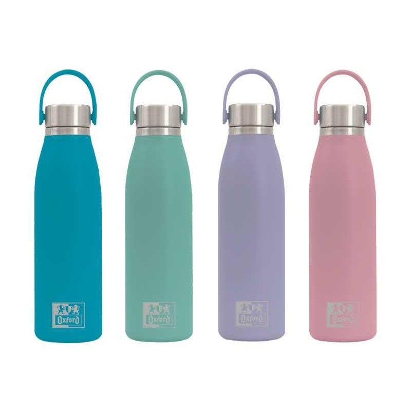 Botella termo de acero inoxidable 304, libre de BPA. Con tapón con boquilla y asa, fácil de transportar. Su recubrimiento cerámico interior ayuda a mantener el sabor original. Doble cámara aislante que protege la temperatura del contenido (hasta 12h en calor y 24h en frío). Superficie antideslizante de alta durabilidad. Base con goma que evita el ruido. Capacidad: 60cl. Colores: azul marino, beige, gris y caqui.