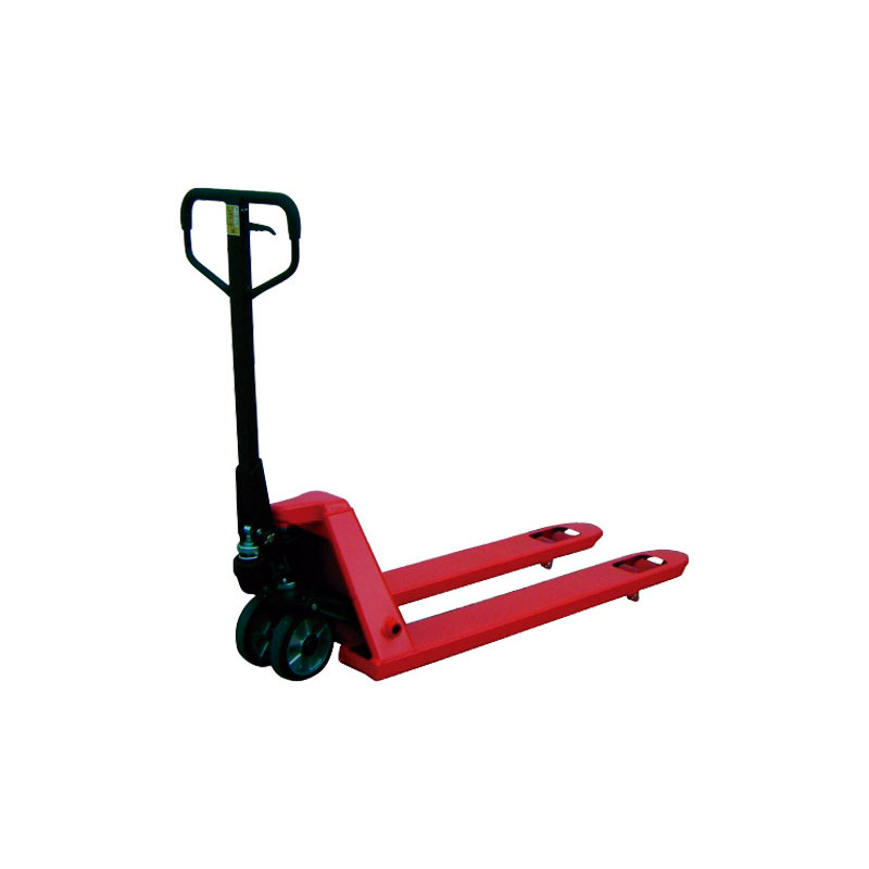Traspaleta con elevación manual con horquillas de 800 mm de largo. Alta capacidad de carga hasta 2.500 Kg. Timón de dirección con muelle de retorno. Rueda del timón de goma elástica. Doble rodillos delanteros. Bomba de seguridad que interrumpe cuando la carga excede de su máximo. Fácil de maniobrar incluso en espacios apretados. Cojinetes autolubricantes para prevenir daño y mejorar su mantenimiento asegurando una vida más larga. Válvula que hace bajar rápidamente sin la carga, siendo más lenta con la carga. Ruedas de 200 milímetros para una operación lisa y fácil.
