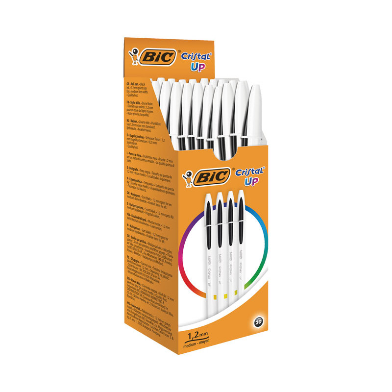 Con su cuerpo blanco opaco y su capuchón bicolor, el elegante bolígrafo BIC Cristal Up hará que fluya toda tu creatividad. Dotado de una punta de 1,2 mm de grosor, este bolígrafo ofrece una increíble sensación de suavidad al escribir. Su punta de carburo de tungsteno es súper duradera, indeformable y resistente al paso del tiempo. El tapón y el clip del bolígrafo van a juego con el color de la tinta