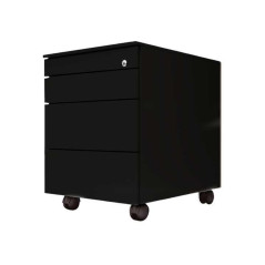 Buck de 4 cajones. Con estructura fabricada en melamina de 19mm y tablero superior en melamina de 25mm. Canto en PVC de 2mm. Tiradores en polímero técnico acabado en RAL 9006. Sistema de cierre centralizado y antivuelco. Guías con rodamiento de nylon. Incluye niveladores en su base. Cerradura con 2 llaves de serie. Cajones para carpetas y/o archivos en formato A4. Medidas: 72x47x60cm.