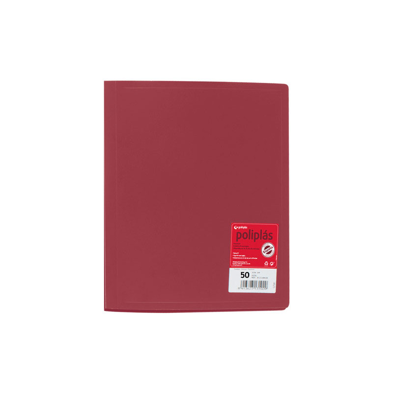 Carpeta de fundas removibles de polipropileno cristal. Tapa semi-rígida de polipropileno. Admite hasta 50 fundas. Colores translúcidos brillantes.