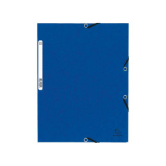 Carpeta de cartón reciclado azul con gomas en blanco y azul.