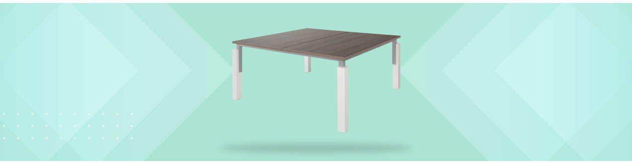 Mesa de reunión en forma circular o rectangular, con superficie en melamina de 2,5 cm. de grosor y canto de PVC de 2 mm. Dos tipos de estructora disponibles: pie tipo panel en melamina de 2,5 cm. de grosor y canto de PVC de 2 mm. y pie en tubo de acero de 12 cm. de diámetro con base de acero estampado de gran estabilidad.