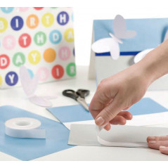 Cinta adhesiva permanente por ambas caras. Una alternativa perfecta a los pegamentos. Fácil de usar, no tiene película protectora, basta con desenrollar, cortar y aplicar. Ideal para presentaciones, informes, manualidades y muchas otras aplicaciones. Se conserva bien con el paso del tiempo, no se seca ni deja manchas o residuos. Rollo de 19mm. y 33m.