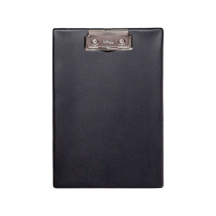 Carpeta de congresos portadocumentos con pinza superior. Fabricada en cartón y revestida en plástico. Fuerte clip plano con níquel y mango empotrado. Abertura de clip aproximada 80mm. Con gancho para colgar. Formato A5.