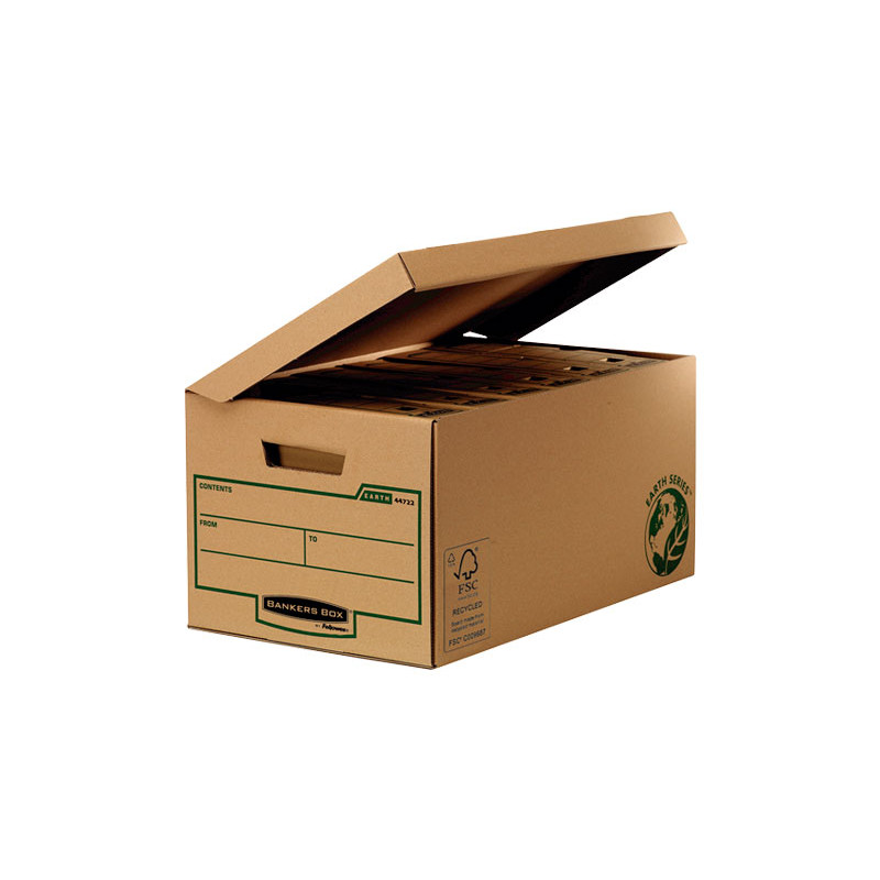 Ideal para archivar documentos y archivos. Tapa dura, resistente y fija. Fabricado en cartón 100% reciclado con certificación FSC® y 100% reciclable. Espacio para identificación en el lateral. Compatible con otros artículos de la gama Earth Series. Con asas reforzadas para un cómodo transporte.