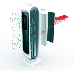 Sistema de purificación en 4 etapas, que captura el 99.97% de partículas e impurezas minúsculas de tan sólo 0.3 micrones, incluyendo esporas de moho, polen, ácaros de polvo, microbios, alérgenos transportados por el aire y el humo del tabaco. Ideal para quienes sufren alergias, asma, gripes, resfriados y otras enfermedades respiratorias. Filtra el aire de una estancia de 28 m² 5 veces en tan sólo 1 hora. Captura el 99,97% de partículas e impurezas minúsculas de tan sólo 0,3 micrones, incluyendo esporas de moho, polen, ácaros del polvo, microbios, humo del tabaco, pelo de mascotas y otros alérgenos. Crea un campo ionizado que elimina los contaminantes en el aire a nivel molecular, neutralizando instantáneamente los virus y bacterias. El sistema antimicrobiano AeraSafe™ protege contra el crecimiento de las bacterias causantes del olor, moho y hongos en el filtro True Hepa. Sistema Auto Smart™ supervisa la calidad del aire y ajusta automáticamente la velocidad del ventilador para mantener el aire purificado. Medidas: 64x40x20,7cm