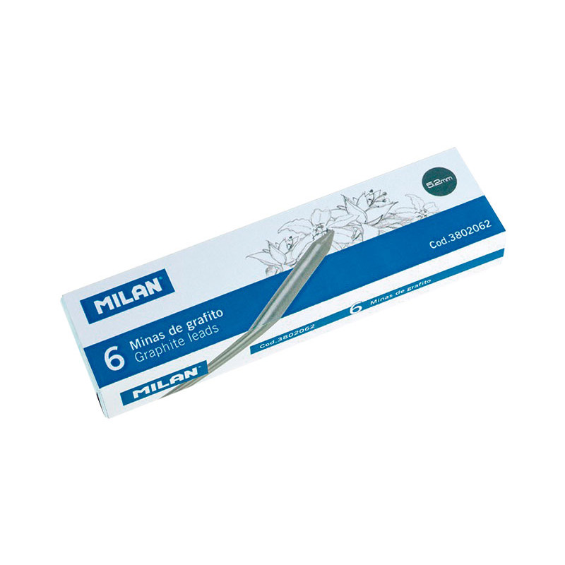 Minas de recarga para portaminas. Para uso sobre papel y/o cartulina. Longitud de 130mm. y 2mm. de grosor. Caja con 12 minas de graduación HB.