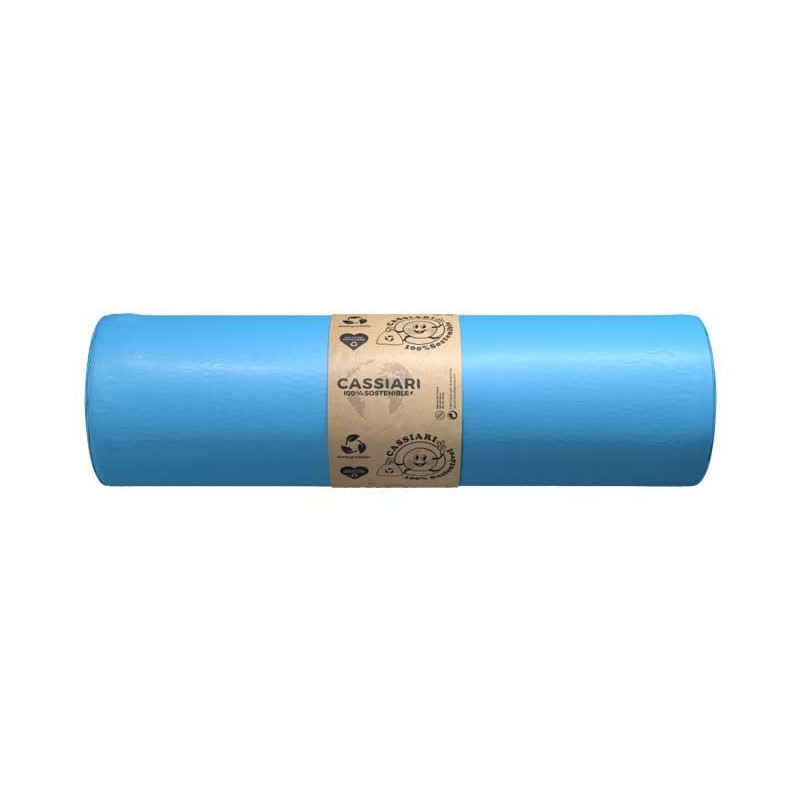 Bolsas de basura 100% sostenibles y biocompostables de 23 micras. Fabricadas con hasta un 60% menos de plástico lo que reduce de forma drástica las emisiones de Co2. Se pueden reutilizar y reciclar. Rollo con 20 bolsas de 90x120cm.