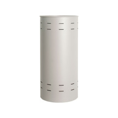 Paragüero metálico perforado, fabricado en chapa de 0,5mm de espesor. Discos inferiores de fieltro. Dimensiones: ø 21,5cm de diámetro y 50cm de altura.