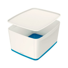 Caja de almacenaje modular bicolor de diseño moderno y acabado brillante resistente a los arañazos, para almacenar de forma rápida documentos, revistas, ropa, juguetes y otros accesorios. Ideal para una organización minimalista en casa o en la oficina. Fabricada con robusto material impermeable. Apto para uso alimentario. Sin BPA. Solución de almacenaje flexible para utilizar en casa, la oficina, el baño, la sala de reuniones, etc. Cabe en estanterías de tamaño estándar y debajo de la cama. Se pueden apilar hasta 4 cajas, fácil de transportar y reorganizar. Fácil de limpiar, alta resistencia al agua. Posibilidad de añadir compartimentos y bandejas de organización de la misma colección MyBox, que encajan perfectamente en la caja para separar el contenido. Dimensiones exteriores: 31,8x12,8x19,1cm. Capacidad: 5 litros.