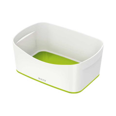 Caja de almacenaje modular bicolor de diseño moderno y acabado brillante resistente a los arañazos, para almacenar de forma rápida documentos, revistas, ropa, juguetes y otros accesorios. Ideal para una organización minimalista en casa o en la oficina. Fabricada con robusto material impermeable. Apto para uso alimentario. Sin BPA. Solución de almacenaje flexible para utilizar en casa, la oficina, el baño, la sala de reuniones, etc. Cabe en estanterías de tamaño estándar y debajo de la cama. Se pueden apilar hasta 4 cajas, fácil de transportar y reorganizar. Fácil de limpiar, alta resistencia al agua. Posibilidad de añadir compartimentos y bandejas de organización de la misma colección MyBox, que encajan perfectamente en la caja para separar el contenido. Dimensiones exteriores: 31,8x12,8x19,1cm. Capacidad: 5 litros.