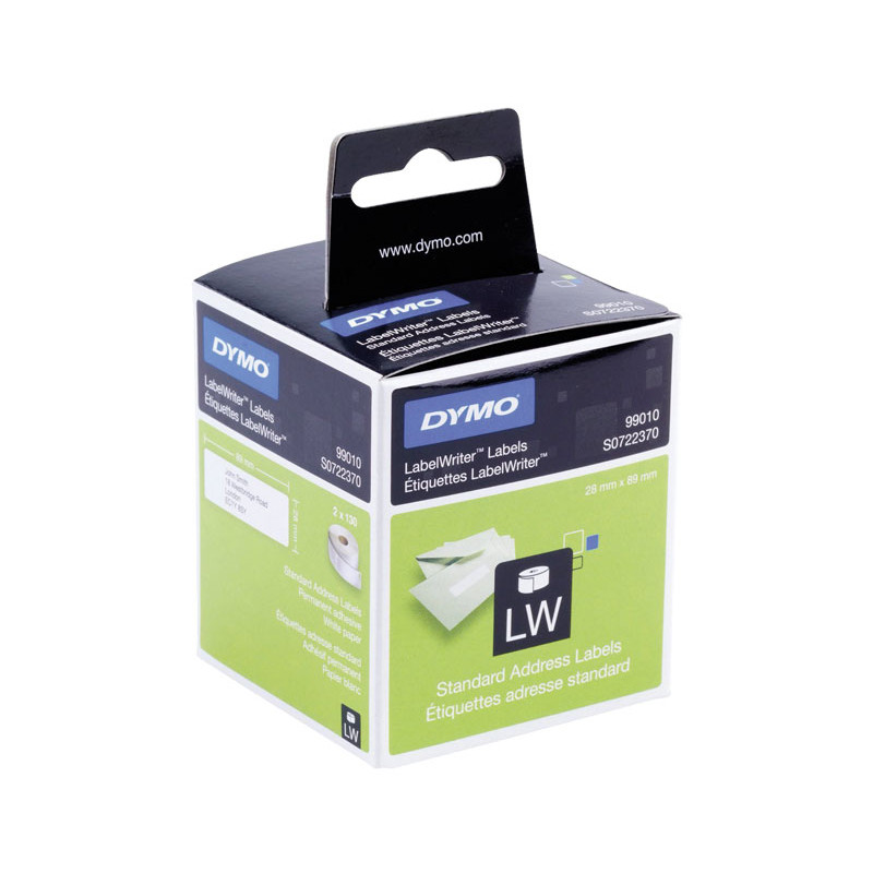 Etiquetas autoadhesivas, perfectas para añadir la dirección en sobres, etiquetar carpetas, etc. Con adhesivo permanente. El proceso de impresión térmica directa elimina la necesidad de tinta y tóner. Producto compatible con las impresoras de etiquetas Dymo LabelWriter. Rollo con 260 de etiquetas de 89x36mm. Impresión negra sobre fondo transparente.