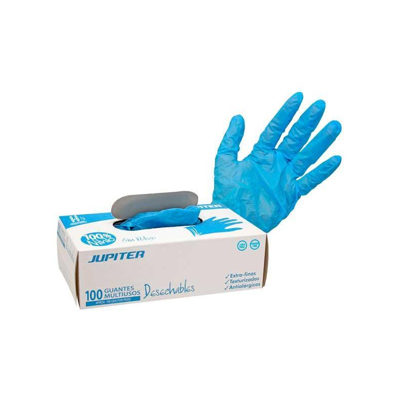 Caja con 100 guantes desechables de nitrilo. Sin polvo, texturizados y antialérgicos. Talla 7-7,5.