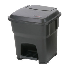 Papelera fabricada en acero inoxidable con recipiente inferior en PVC. Con pedal para la apertura de la tapa. Capacidad para 30 litros. Dimensiones: 64x30cm.