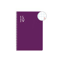 Agenda de espiral con la cubierta de polipropileno opaco. Cierre de goma elástica y uñero microperforado. Papel de 70gr. FSC®. Interior con día página, sábado y domingo en la misma página. Contiene datos personales, onomástica, festivos, fechas a destacar, horarios, hojas checklist, mapas, etc.