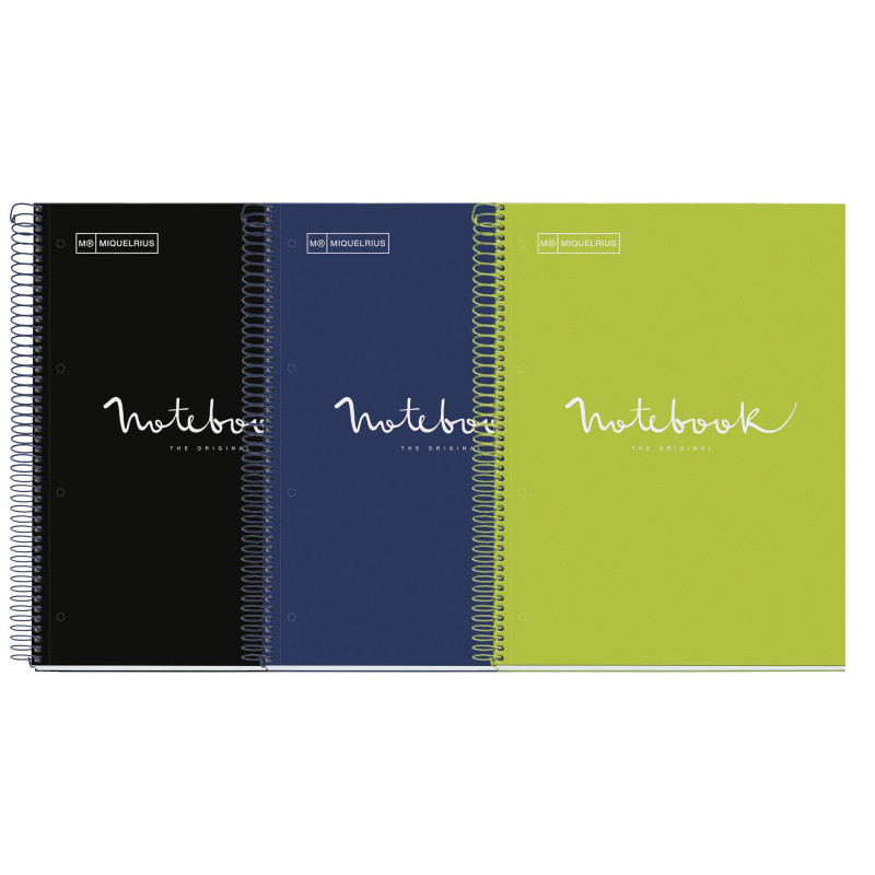 Cuaderno clásico en formato folio, con tapa extradura y espiral negra con cierre coil-lock en el lado izquierdo. Con 80 hojas lisas de papel Optik Paper de 90gr, resistente a la presión del lápiz y al borrado, así como al traspaso de tinta líquida. Colores de las tapas: Malva, Rosa, Rojo, Naranja, Verde y Azul.
