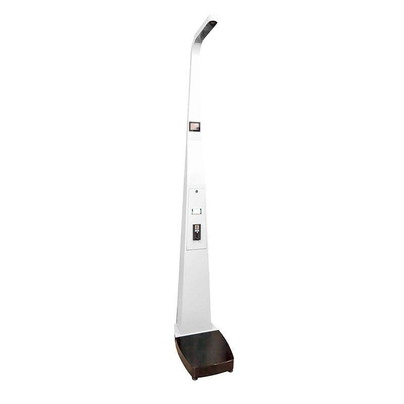 Báscula pesapersonas de diseño elegante, para medir el peso y la talla. También ofrece su peso ideal en función de su altura, sexo e IMC. Tiene la opción de pesabebés virtual. Con pantalla táctil de 3.2" con múltiples idiomas. Rango de peso: desde 1 kg. a 150 kg. (divisiones de 20 gr.). Monedero: Pago adaptable a todas las monedas. Impresora compacta última generación, con corte de papel automático. Cálculo automático del IMC. Con ruedas. Dimensiones: 229x35,5x54cm.