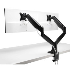 Brazo ergonómico doble, ayuda a mejorar la postura, la alineación de los ojos y la comodidad del cuello y los hombros cuando la altura del monitor se ajusta correctamente. Diseño compacto y resistente que permite montarlo en espacios reducidos. El monitor se pueden ajustar de forma totalmente independiente. Brazos dobles con resorte para ajustar fácilmente la altura del monitor (185 mm-435 mm). Con giro de 180° y rotación del monitor, inclinación de +90°/- 90° y permite el ajuste hacia arriba, hacia abajo, hacia delante y hacia atrás con una sola mano. Apto para monitores planos o curvos de 17"-32" con un peso de hasta 9 kg. Fácil de instalar con la placa desmontable de liberación rápida incluida Vesa® (75 y 100 mm) y la abrazadera en C con goma de silicona que reducirá las vibraciones y protegerá la superficie del escritorio, con orificio de ojal (rango de grosor del escritorio: 10-80 mm). Herramientas de montaje y ajuste incluidas. Con el sistema de gestión de cables mantiene quedan organizados para un espacio de trabajo más ordenado. Con certificación TÜV e IGR.