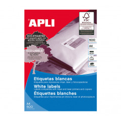 Para cualquier sistema de impresión. Etiquetas blancas autoadhesivas especiales para una excelente impresión en impresoras inkjet, láser y fotocopiadoras. Cantos rectos. Formato de etiquetas predefinido en la mayoría de softwares.