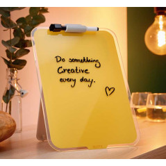 Pizarra de borrado en seco ideal para tomar notas y recordatorios. Escribe o pega notas directamente en la superficie magnética. La superficie es de cristal templado de seguridad con capacidad de borrado ultra y alta resistencia a las manchas de tinta, marcas de rotulador, arañazos y abolladuras. El diseño sin marco maximiza el espacio de escritura. Fácil de instalar con el sistema de montaje oculto en 4 esquinas y el kit de montaje incluido (2 tornillos y 2 tacos de pared). Incluye rotulador negro de borrado en seco que con borrador en la tapa y un paño de microfibra para facilitar la limpieza. Requiere limpieza ocasional para garantizar que la superficie de la pizarra funcione al máximo. Con su diseño minimalista y atractivos colores con acabado mate, puedes añadir estilo y color a tu espacio de trabajo. Dimensiones: 40x4x60cm.