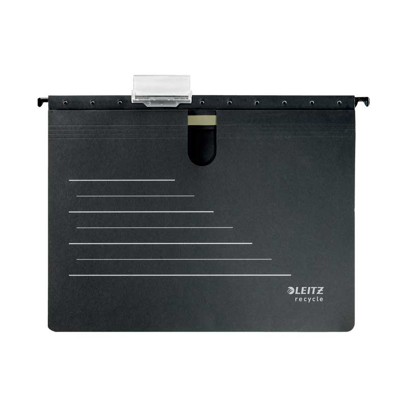 Cajetín de cartón forrado interior y exteriormente con papel impreso reciclable. Para archivadores de palanca con lomo de 65mm.