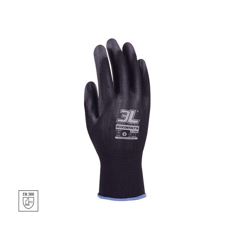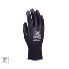Guantes de seguridad mecánicos, fabricados con soporte de nylon sin costuras, con recubrimiento de poliuretano en base acuosa. Parcialmente descubierto en el dorso para una buena ventilación. Excelente desteridad, sensibilidad y agarre en seco y húmedo. Protección frente a riesgos mecánicos: EN388 4132X. Gran resistencia a la abrasión; Nivel 4. Corte por cuchilla: Nivel 1. Desgarro: Nivel 3. Perforación: Nivel 2. Corte EN ISO 13997: X. Protección frente a riesgos térmicos: EN407 X1XXXX. Inflamabilidad: Nivel X. Calor de contacto: Nivel 1. Calor convectivo: Nivel X. Calor radiante: Nivel X. Pequeñas salpicaduras de metal fundido: Nivel X. Grandes masas de metal fundido: Nivel X. Apto para todo tipo de aplicaciones donde se requiere un alto nivel de sensibilidad y desteridad sin riesgo de corte. Manejo de pequeñas piezas y componentes, ensamblado en general, micro ingeniería, instrumentación y elementos de precisión. Manipulación de alimentos. Categoría CE: Cat II.