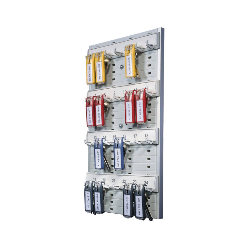 Armario portallaves fabricado en aluminio y con cerradura de cilindro. Listones portallaves especiales para sujeción segura y acceso óptimo. Opción de altura variable. Incluye juego de montaje y 6 llaveros Key Clip de visión óptima. Capacidad para 18 llaves. Dimensiones: 28x30,2x11,8cm.