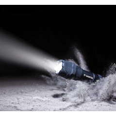 Linterna robusta óptima para cualquier actividad relacionada con trabajo manual, camping, picnics, senderismo, ciclismo, escalada y otras actividades al exterior. Es particularmente resistente gracias a su carcasa de 3 componentes: acero inoxidable, caucho y plástico ABS; esto la hace adecuada para actividades al exterior así como para el uso en garajes, coches o reparaciones. 14 LEDs de 5mm. Su potencia de 70 lúmenes y su rango de 32 metros. Tiene un mango de goma antideslizante así como una cuerda para atar la linterna de forma segura. La autonomía de la linterna es de hasta 125h e incluye 2 pilas alcalinas D VARTA High Energy.