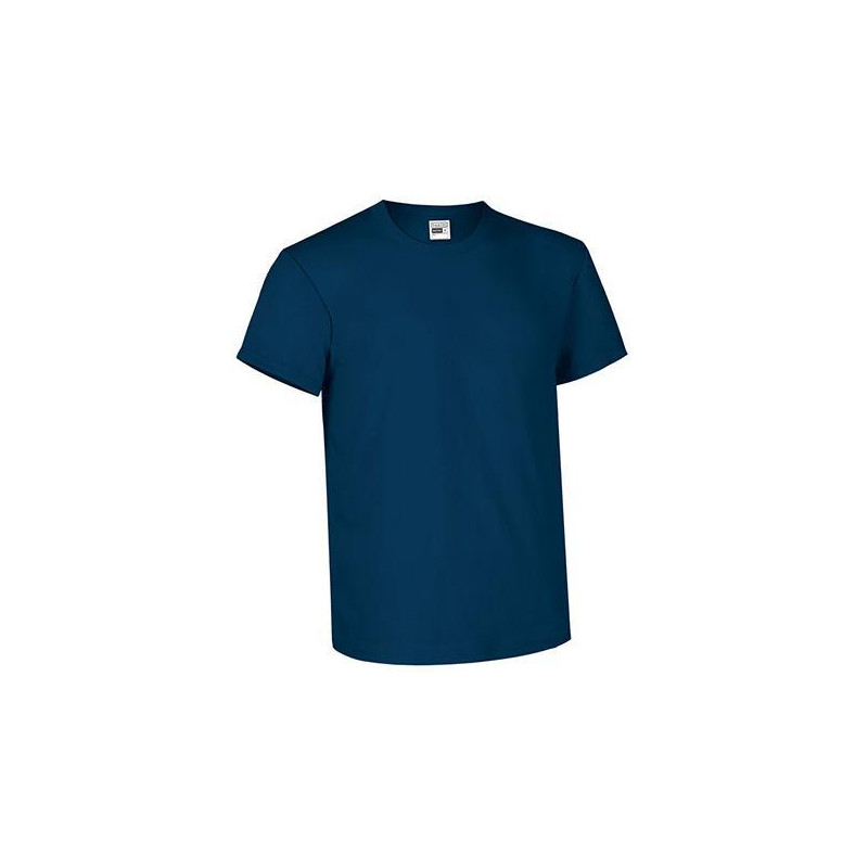 Camiseta de manga corta tubular. Cuello redondo en canalé con cubrecosturas interior. Fabricada en 100% algodón, punto liso.