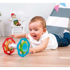 Rodillo con "palo de lluvia" incorporado que favorece la motricidad en general. Al hacerlo rodar por el suelo, estimula el gateo y el desplazamiento. Con zonas de rodadura blanditas que lo hacen silencioso al rodar. Edad recomendada de 6 a 18 meses. Juego activo ideal para la coordinación Mano-Ojo y la estimulación sensorial. Medidas: 14cm de largo y 10cm de diámetro.
