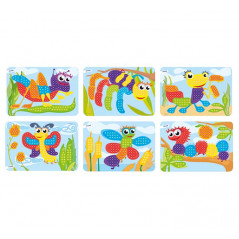 Pack de láminas, modelos divertidos para reproducir con los pegs. Desarrollan la orientación espacial y la adquisición de nociones matemáticas básicas. Además de ejercitar el agarre en forma de pinza y la coordinación entre los dedos pulgar e índice. Edad recomendada de 3 a 6 años. Medidas: 30x21cm.