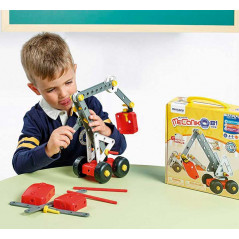 Completamente renovado, el juego de “primeras ingenierías” con nuevos elementos y nuevo diseño. Mecaniko 81 presenta piezas de todo tipo y 6 fichas para construir objetos funcionales, y a partir de ahí realizar montajes más complejos desarrollando la creatividad. Edad recomendada de 4 a 9 años. Juego visual que desarrolla las habilidades motoras finas, la solución creativa de problemas así como la orientación espacial. Ideal para el método STEM.