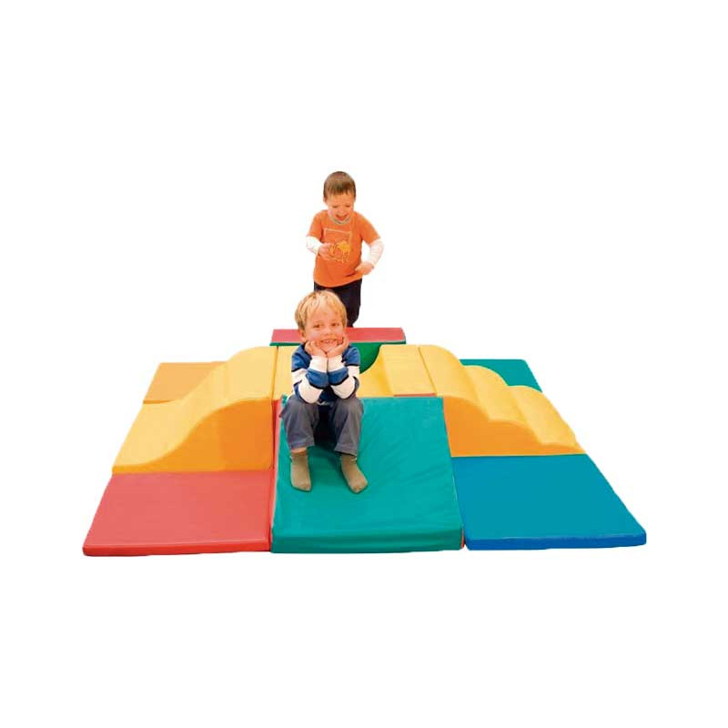 Bloques de psicomotricidad fabricados en poliuretano espumado y recubierto de material plástico muy resistente. Piezas para ser utilizadas en salas interiores con suelos lisos. Sin cremalleras ni objetos punzantes. Lavables. Los niños deberán usarlos descalzos. Ideal para desarrollar la motricidad gruesa.