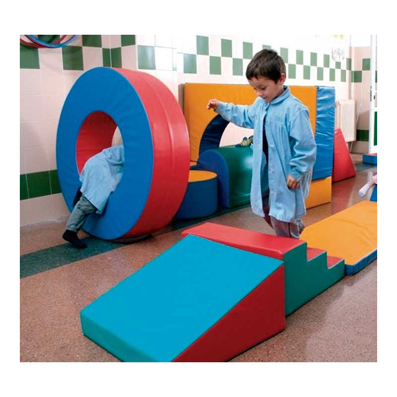 Bloques de psicomotricidad fabricados en poliuretano espumado y recubierto de material plástico muy resistente. Piezas para ser utilizadas en salas interiores con suelos lisos. Sin cremalleras ni objetos punzantes. Lavables. Los niños deberán usarlos descalzos. Ideal para desarrollar la motricidad gruesa.