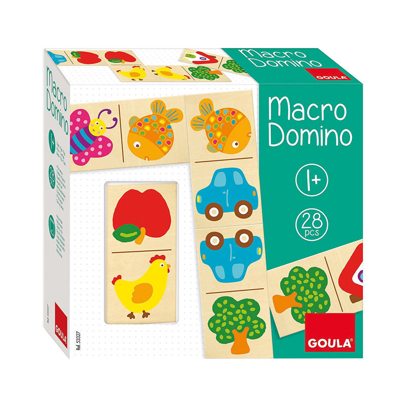 Diviértete con este dominó de piezas grandes para los mas pequeños. Aprenderas diferentes animales y objetos del mundo real. Colores muy vivos. Contiene bolsa para guardar las 28 piezas. Piezas de madera grandes (12x6cm). Aprendizaje de diferentes animales y objetos. Desarrolla la habilidad manual y la coordinación ojo/mano. Contiene bolsa para guardar el producto Caja con ventana donde podéis ver el tamaño de la pieza real. Edad recomendada a partir de 1 año. Ideal para desarrollar la coordinación Mano-Ojo, la destreza manual, el razonamiento y la retención visual.