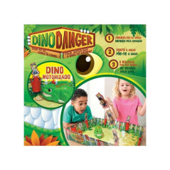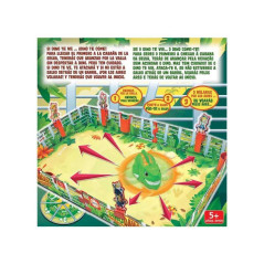 Juego de mesa para intentar llegar a la cabaña de la selva escapando del Dino. Si Dino te ve… ¡Dino te come! Hay que avanzar por la valla sin despertar a Dino. Contenido: Caja transformable en tablero, 4 barriles de protección, Ruleta, Dinosaurio motorizado e Instrucciones. Edad recomendada a partir de 5 años.