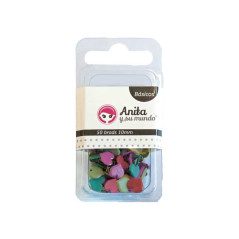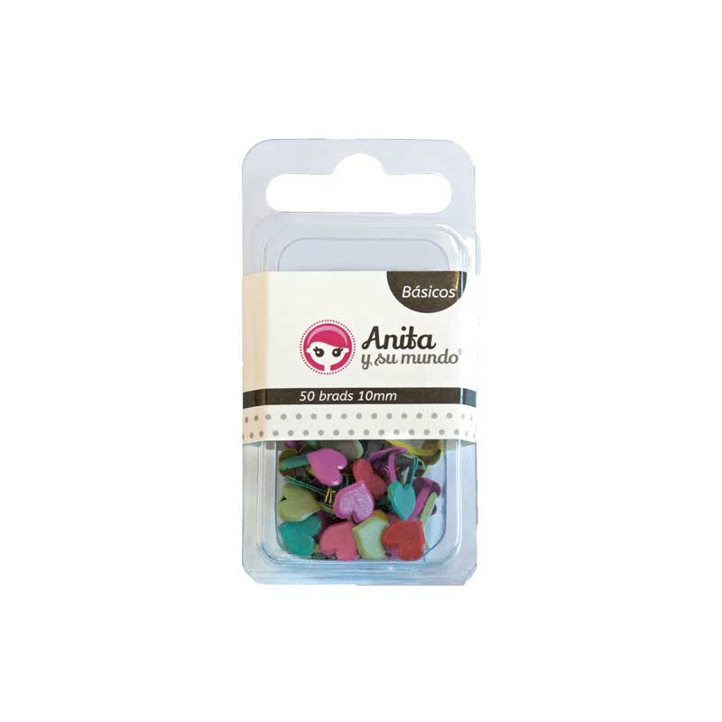 • PACK 50 BRADS METÁLICOS ANITA Y SU MUNDO "CORAZONES" 10mm