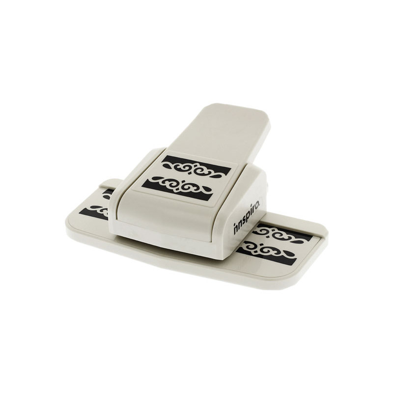 Troqueladora para crear bordes y diseños continuos. La guía impresa en la base ayuda a conseguir diseños perfectamente alineados. Para realizar bordes continuos, ajustar el diseño perforado con el diseño impreso de la guía de alineación y volver a perforar. Para mejores resultados, utilizar papel de entre 120gr y 200gr.
