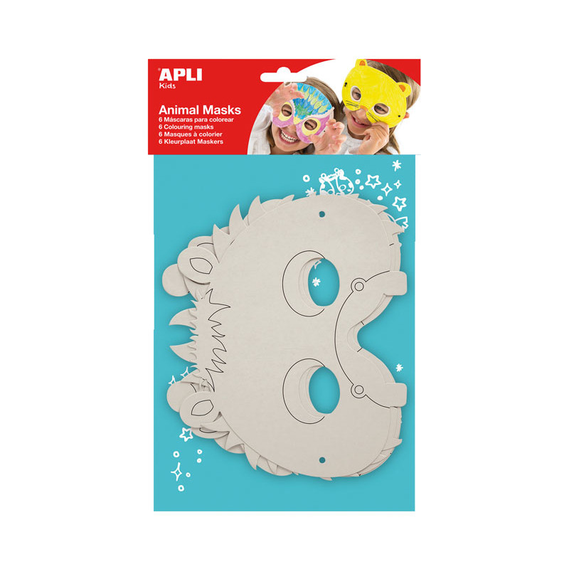 • BOLSA 6 MÁSCARAS APLI PARA COLOREAR: ANIMALES