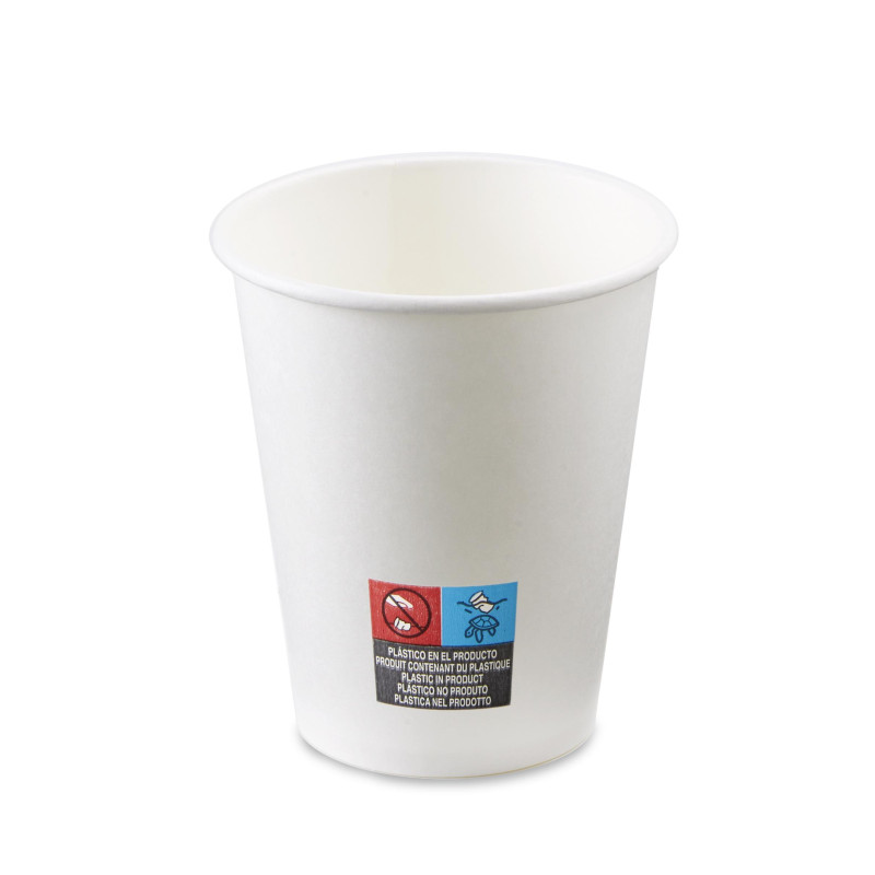Vasos compostables y biodegradables, fabricados en papel. Ideales para bebidas calientes. Los productos Biodegradables son aquellos que se descomponen por la acción de agentes biológicos en condiciones naturales. Se denominan compostables cuando se degradan junto al resto de residuos orgánicos. Capacidad de 125ml. Cumplen la norma europea EN13432.